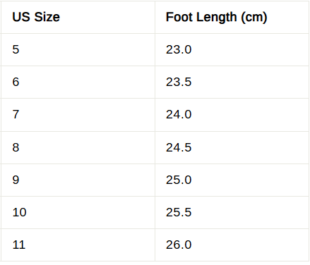 👟 Shoe Size Chart
