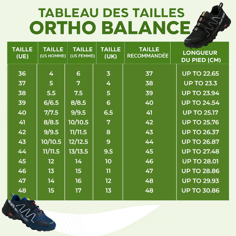 Nos chaussures Ortho Balance sont conçues pour la vie quotidienne, le travail et les aventures en plein air, et garantissent un confort et un soutien inégalés. Recommandées par les spécialistes en orthopédie et en podologie pour leur conception ergonomique, elles sont parfaites pour améliorer la santé du pied et réduire la douleur. Marchez en toute confiance en sachant que vous êtes entre de bonnes mains, tant pour vos aventures que pour la santé de vos pieds.